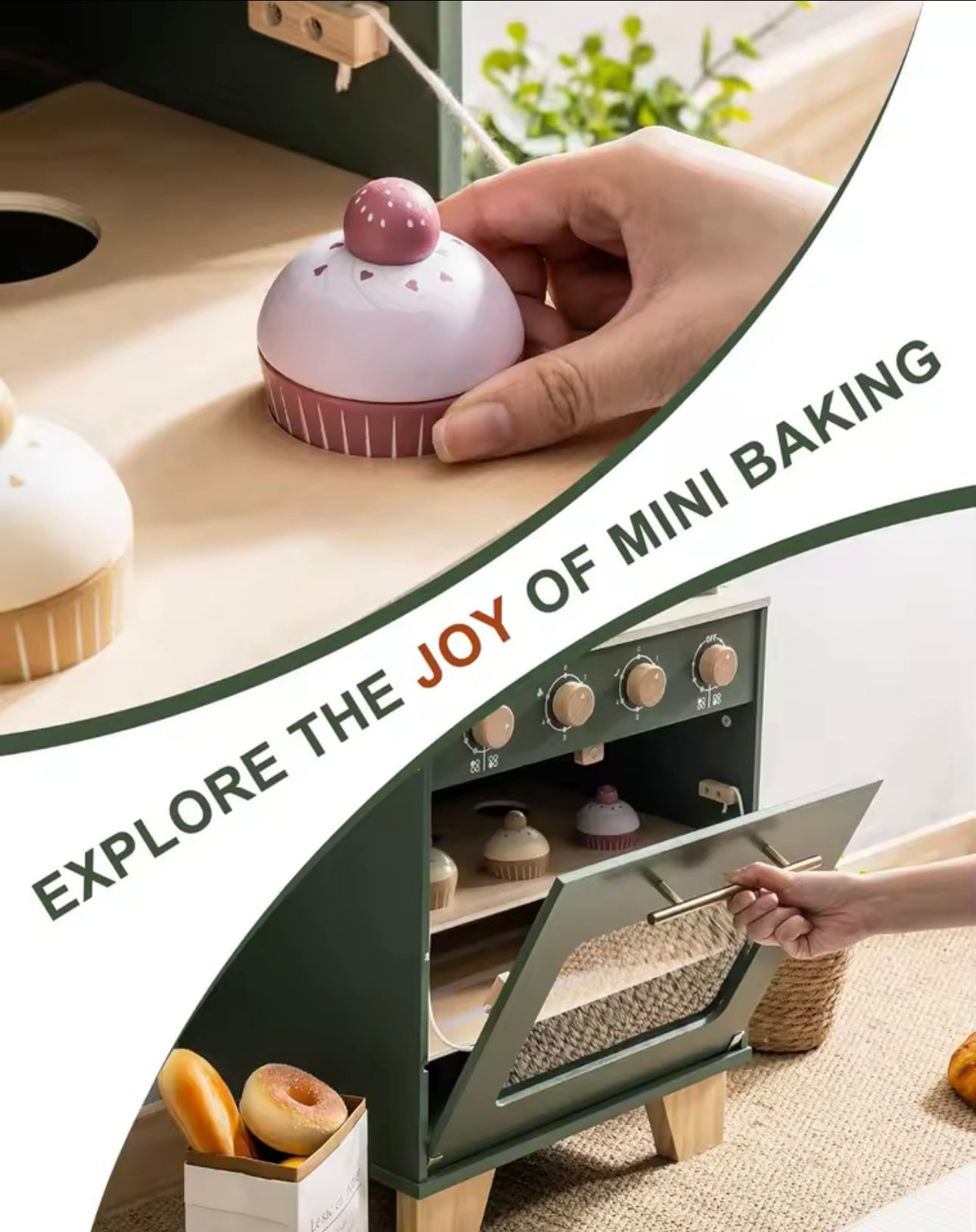 Montessori Vintage Wooden Toy Oven - Green Play Kitchen, Aged 3+