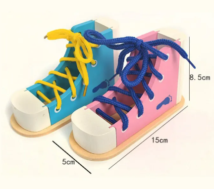 Help you child learn to tie their shoes with this Montessori Wooden Shoelace Toy - Perfect for building fine motor skills, hand eye coordination, and early practical life independence. Designed for children aged 2 plus.